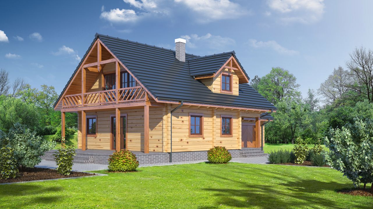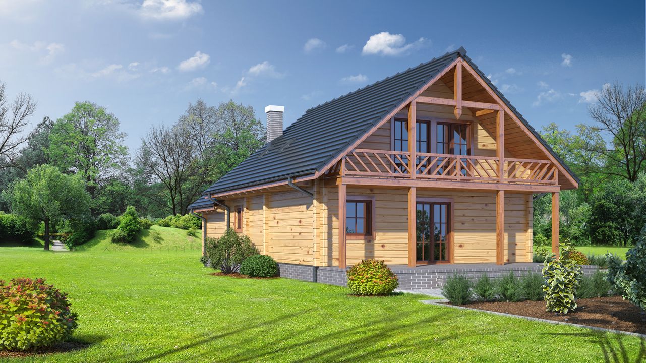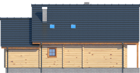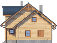 Wysokość ścianki kolankowej: 0.73 m. Ilość drewna na więźbę: 7.23 m³. Strop: drewniany. Pokrycie dachu: dachówka gontopodobna z posypką Gerard Corona. Ściany zewnętrzne: płazy drewniane + wełna Rockwool + deska. Ściany wewnętrzne: płazy drewniane. Typ ogrzewania: kocioł gazowy.