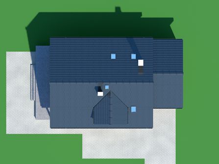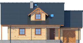 Graficzne opracowanie rzutów poglądowych widocznych na karcie projektu zostało wykonane przez Extradom.pl. Prezentowane przez Extradom.pl wizualizacje wykonane zostały przez autora projektu i należy poczytywać je jedynie za przykład i propozycję wykończenia, wizję architektoniczną autora projektu. Ostateczne wykończenie budynku może nastąpić na wiele sposobów. Szczegółowe rozwiązania zastosowane w oferowanej dokumentacji - w tym również ilość, lokalizacje i wygląd okien, drzwi, kominów - mogą w niewielkim stopniu różnić się od prezentowanej wizualizacji budynku.