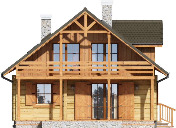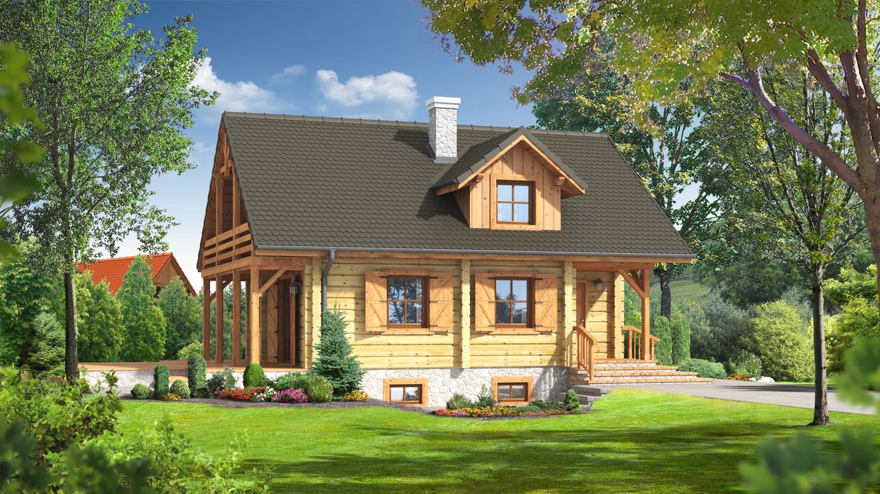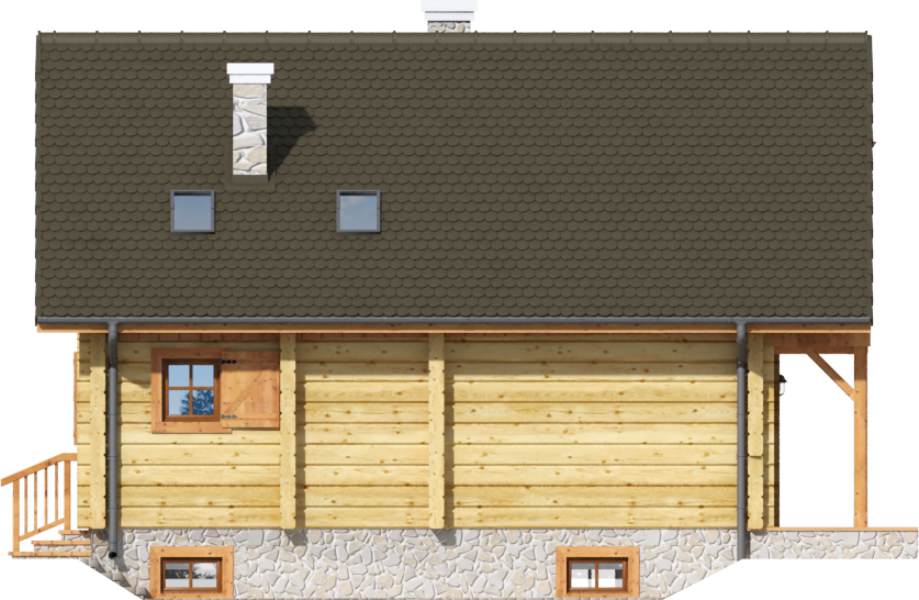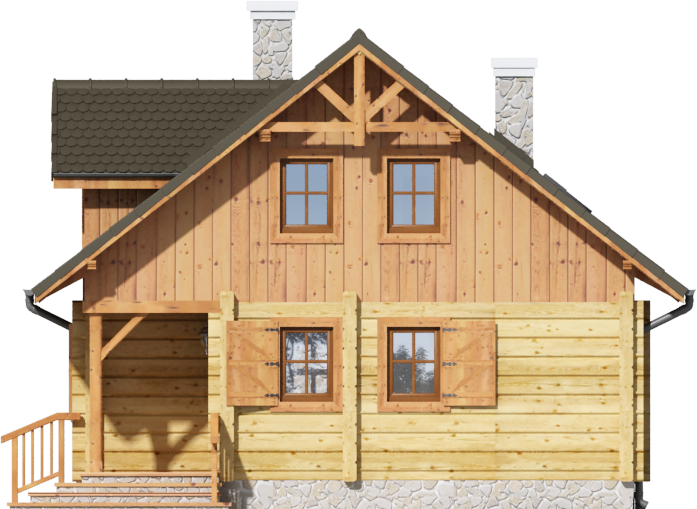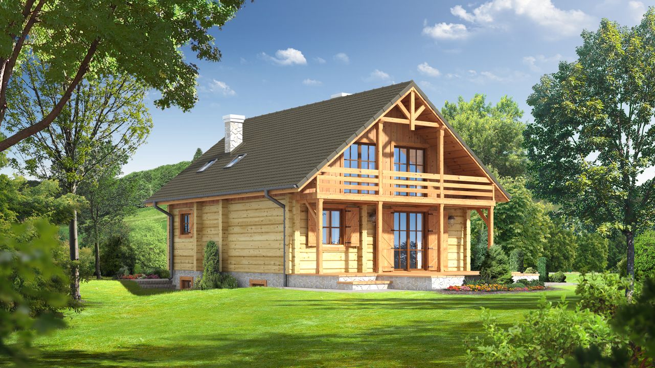 Wysokość ścianki kolankowej: 0.59 m. Ilość drewna na więźbę: 9 m³. Strop: żelbet + drewniany. Pokrycie dachu: dachówka gontopodobna Gerard Corona. Ściany zewnętrzne: płazy drewniane + wełna mineralna + deska. Ściany wewnętrzne: płazy drewniane. Typ ogrzewania: kocioł gazowy lub kocioł na paliwo stałe. Inne: okna połaciowe Velux.