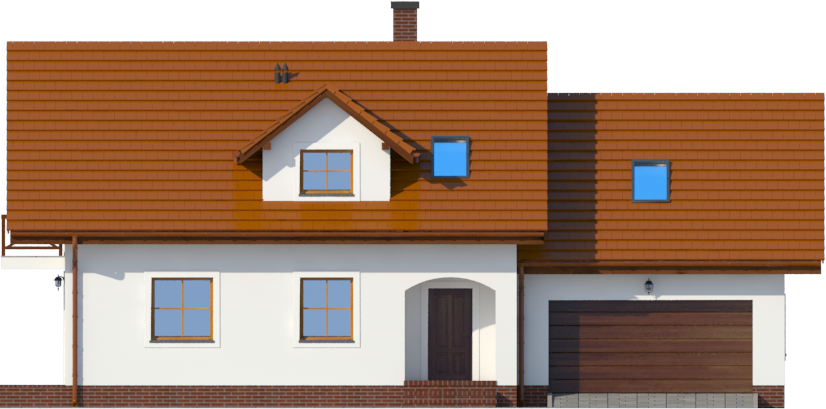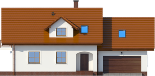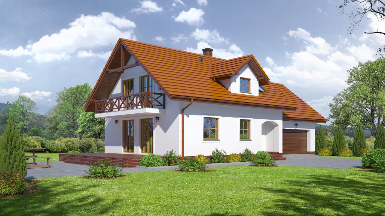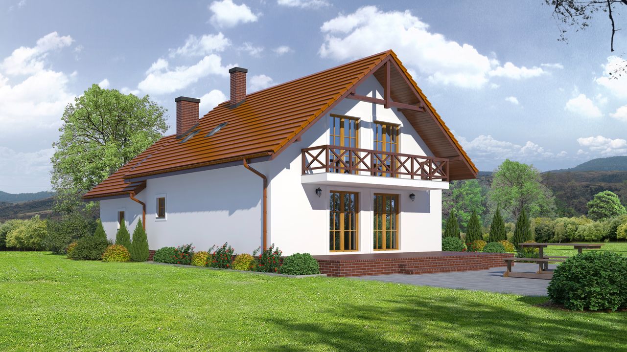 Graficzne opracowanie rzutów poglądowych widocznych na karcie projektu zostało wykonane przez Extradom.pl. Prezentowane przez Extradom.pl wizualizacje wykonane zostały przez autora projektu i należy poczytywać je jedynie za przykład i propozycję wykończenia, wizję architektoniczną autora projektu. Ostateczne wykończenie budynku może nastąpić na wiele sposobów. Szczegółowe rozwiązania zastosowane w oferowanej dokumentacji - w tym również ilość, lokalizacje i wygląd okien, drzwi, kominów - mogą w niewielkim stopniu różnić się od prezentowanej wizualizacji budynku.