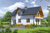 Graficzne opracowanie rzutów poglądowych widocznych na karcie projektu zostało wykonane przez Extradom.pl. Prezentowane przez Extradom.pl wizualizacje wykonane zostały przez autora projektu i należy poczytywać je jedynie za przykład i propozycję wykończenia, wizję architektoniczną autora projektu. Ostateczne wykończenie budynku może nastąpić na wiele sposobów. Szczegółowe rozwiązania zastosowane w oferowanej dokumentacji - w tym również ilość, lokalizacje i wygląd okien, drzwi, kominów - mogą w niewielkim stopniu różnić się od prezentowanej wizualizacji budynku.
