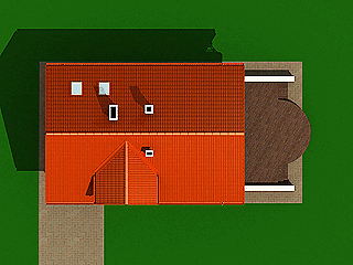 Graficzne opracowanie rzutów poglądowych widocznych na karcie projektu zostało wykonane przez Extradom.pl. Prezentowane przez Extradom.pl wizualizacje wykonane zostały przez autora projektu i należy poczytywać je jedynie za przykład i propozycję wykończenia, wizję architektoniczną autora projektu. Ostateczne wykończenie budynku może nastąpić na wiele sposobów. Szczegółowe rozwiązania zastosowane w oferowanej dokumentacji - w tym również ilość, lokalizacje i wygląd okien, drzwi, kominów - mogą w niewielkim stopniu różnić się od prezentowanej wizualizacji budynku.