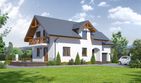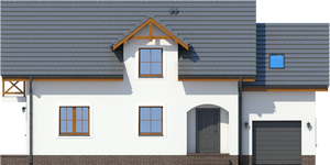 Graficzne opracowanie rzutów poglądowych widocznych na karcie projektu zostało wykonane przez Extradom.pl. Prezentowane przez Extradom.pl wizualizacje wykonane zostały przez autora projektu i należy poczytywać je jedynie za przykład i propozycję wykończenia, wizję architektoniczną autora projektu. Ostateczne wykończenie budynku może nastąpić na wiele sposobów. Szczegółowe rozwiązania zastosowane w oferowanej dokumentacji - w tym również ilość, lokalizacje i wygląd okien, drzwi, kominów - mogą w niewielkim stopniu różnić się od prezentowanej wizualizacji budynku.