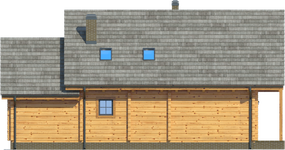 Wysokość ścianki kolankowej: 0.73 m. Strop: drewniany. Pokrycie dachu: dachówka gontopodobna z posypką Gerard Corona. Ściany zewnętrzne: płazy drewniane + wełna mineralna + deska. Ściany wewnętrzne: płazy drewniane. Typ ogrzewania: kocioł gazowy.