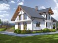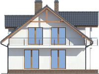 Graficzne opracowanie rzutów poglądowych widocznych na karcie projektu zostało wykonane przez Extradom.pl. Prezentowane przez Extradom.pl wizualizacje wykonane zostały przez autora projektu i należy poczytywać je jedynie za przykład i propozycję wykończenia, wizję architektoniczną autora projektu. Ostateczne wykończenie budynku może nastąpić na wiele sposobów. Szczegółowe rozwiązania zastosowane w oferowanej dokumentacji - w tym również ilość, lokalizacje i wygląd okien, drzwi, kominów - mogą w niewielkim stopniu różnić się od prezentowanej wizualizacji budynku.