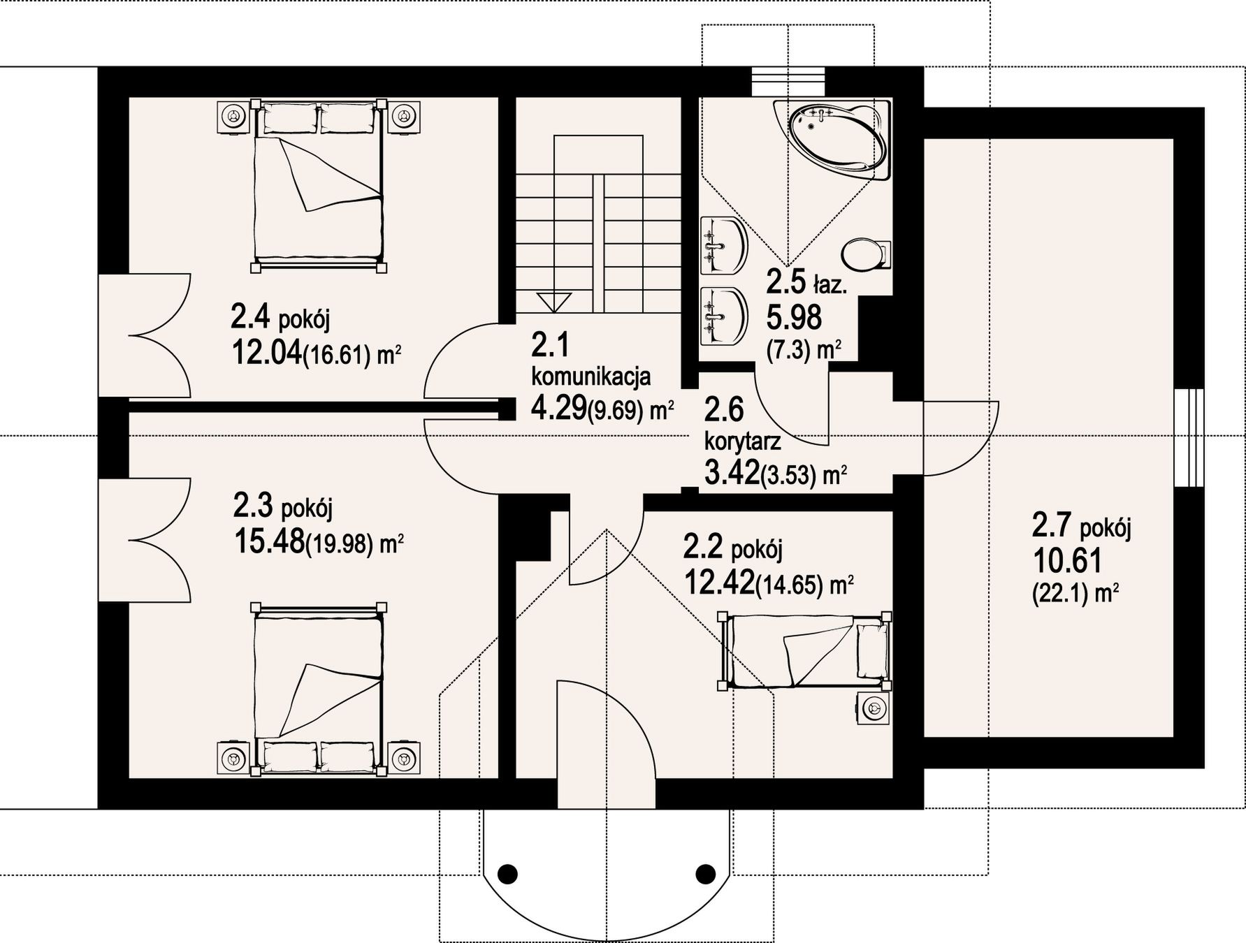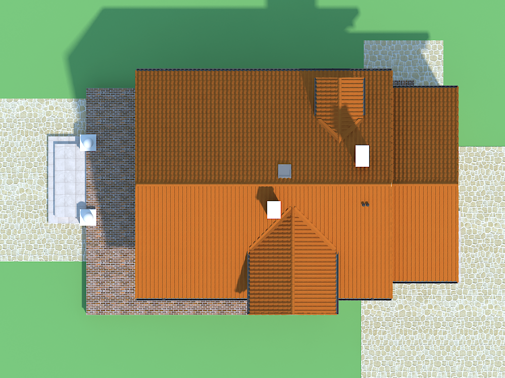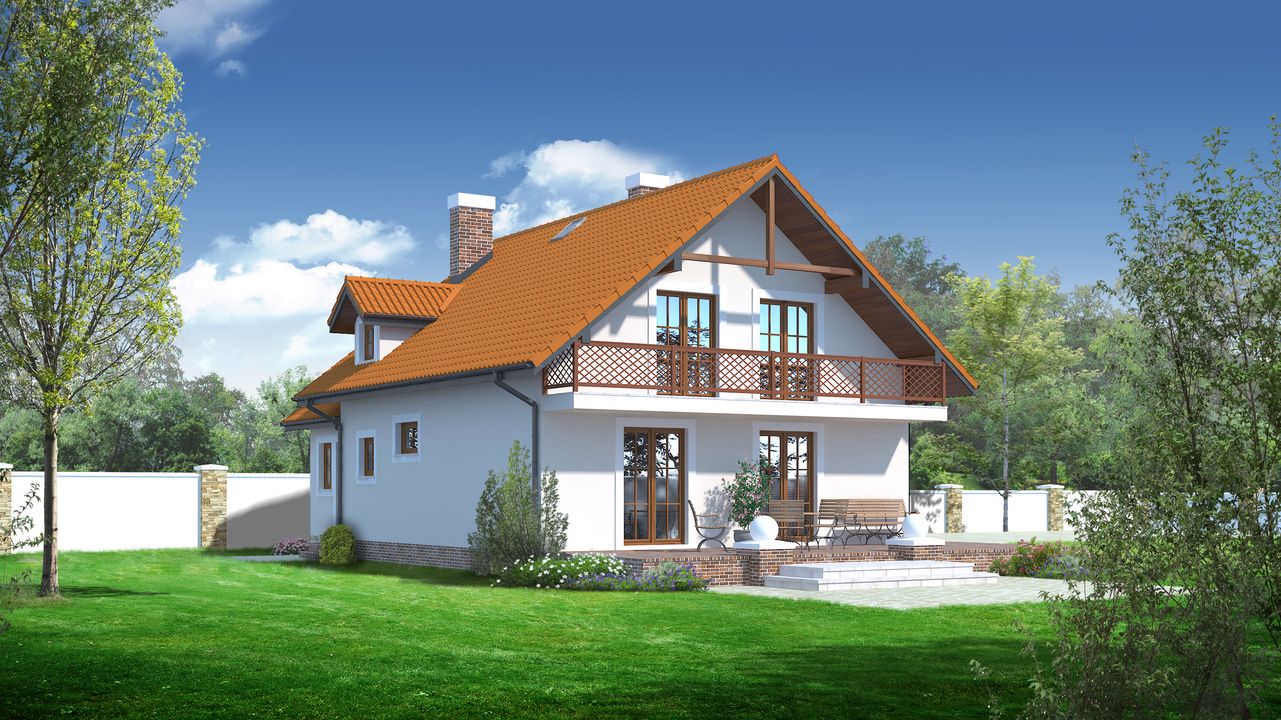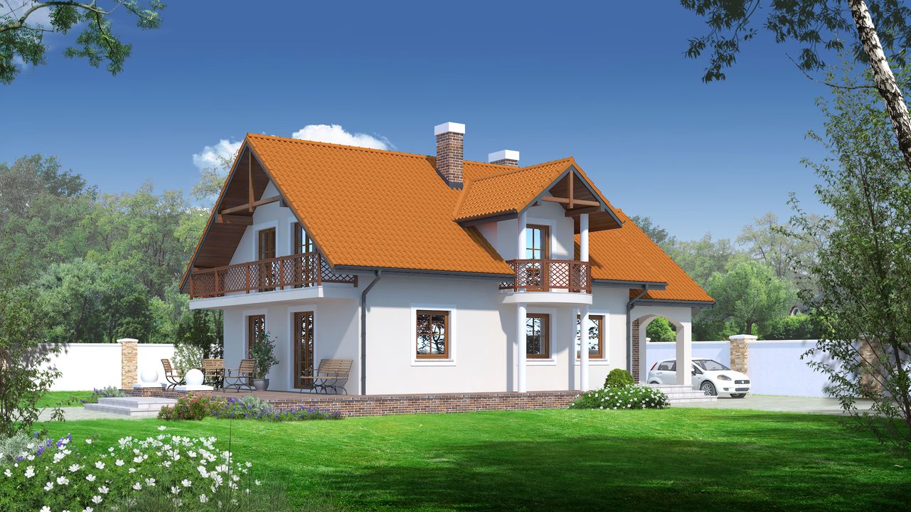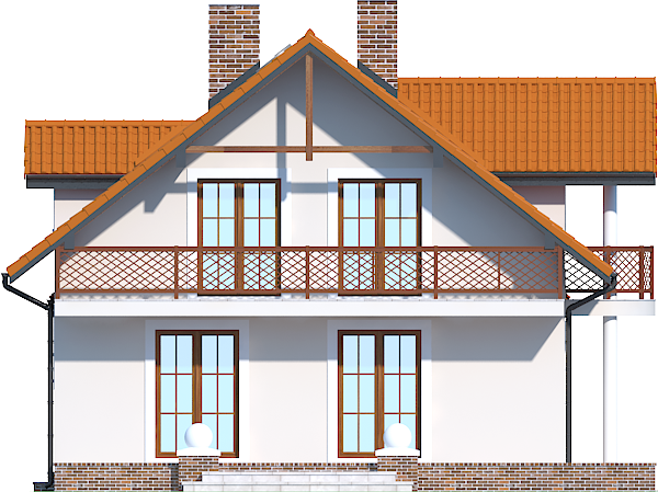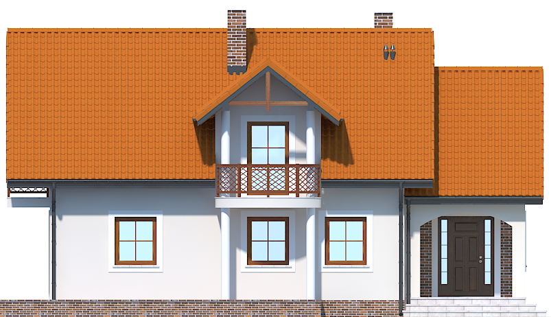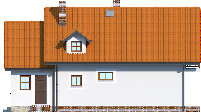 Graficzne opracowanie rzutów poglądowych widocznych na karcie projektu zostało wykonane przez Extradom.pl. Prezentowane przez Extradom.pl wizualizacje wykonane zostały przez autora projektu i należy poczytywać je jedynie za przykład i propozycję wykończenia, wizję architektoniczną autora projektu. Ostateczne wykończenie budynku może nastąpić na wiele sposobów. Szczegółowe rozwiązania zastosowane w oferowanej dokumentacji - w tym również ilość, lokalizacje i wygląd okien, drzwi, kominów - mogą w niewielkim stopniu różnić się od prezentowanej wizualizacji budynku.