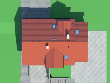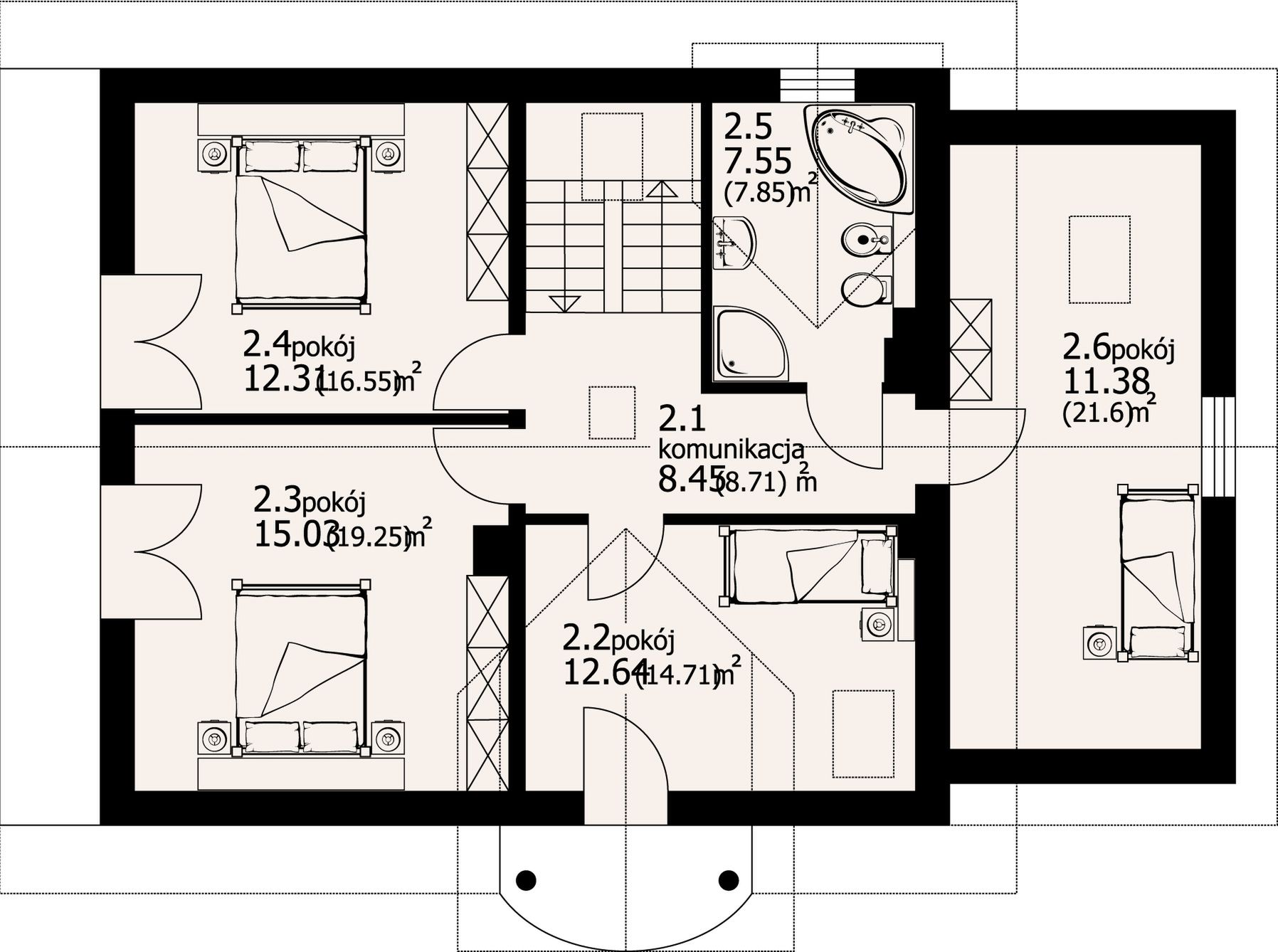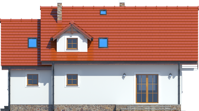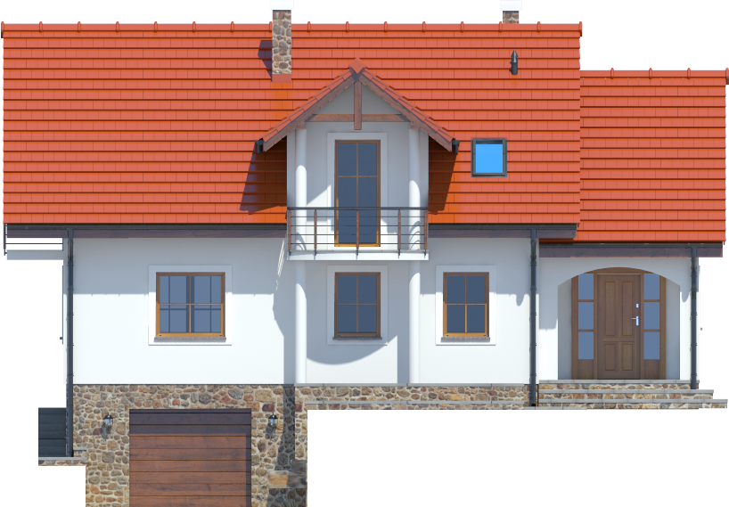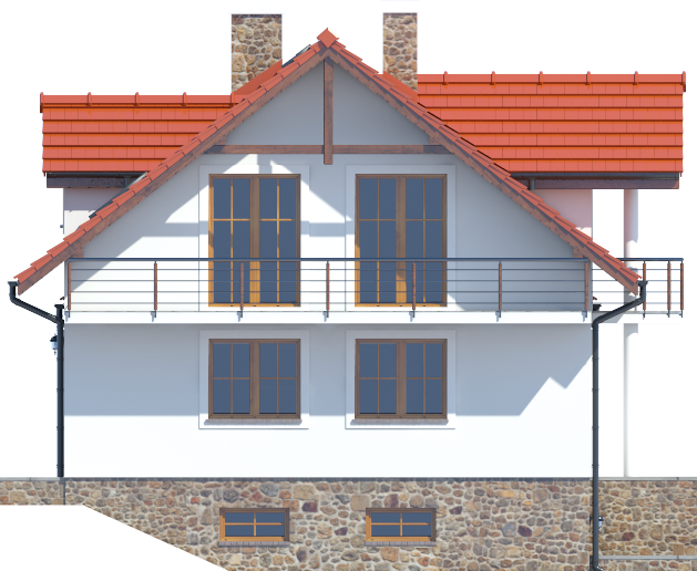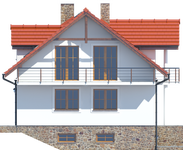 Graficzne opracowanie rzutów poglądowych widocznych na karcie projektu zostało wykonane przez Extradom.pl. Prezentowane przez Extradom.pl wizualizacje wykonane zostały przez autora projektu i należy poczytywać je jedynie za przykład i propozycję wykończenia, wizję architektoniczną autora projektu. Ostateczne wykończenie budynku może nastąpić na wiele sposobów. Szczegółowe rozwiązania zastosowane w oferowanej dokumentacji - w tym również ilość, lokalizacje i wygląd okien, drzwi, kominów - mogą w niewielkim stopniu różnić się od prezentowanej wizualizacji budynku.