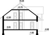 Wysokość ścianki kolankowej: 0.84 m. Ilość drewna na więźbę: 7.21 m³. Strop: płyta żelbetowa. Pokrycie dachu: dachówka ceramiczna. Ściany zewnętrzne: pustaki ceramiczne + styropian. Ściany wewnętrzne: pustaki ceramiczne. Typ ogrzewania: kocioł gazowy.