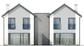 Graficzne opracowanie rzutów poglądowych widocznych na karcie projektu zostało wykonane przez Extradom.pl. Prezentowane przez Extradom.pl wizualizacje wykonane zostały przez autora projektu i należy poczytywać je jedynie za przykład i propozycję wykończenia, wizję architektoniczną autora projektu. Ostateczne wykończenie budynku może nastąpić na wiele sposobów. Szczegółowe rozwiązania zastosowane w oferowanej dokumentacji - w tym również ilość, lokalizacje i wygląd okien, drzwi, kominów - mogą w niewielkim stopniu różnić się od prezentowanej wizualizacji budynku.