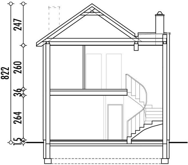 Strop: gęstożebrowy Rector. Ściany zewnętrzne: gazobeton 24cm + styropian 16cm. Pokrycie dachowe: dachówka ceramiczna.