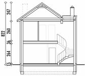 Strop: gęstożebrowy Teriva I. Ściany zewnętrzne: gazobeton 24cm + styropian 20cm. Pokrycie dachowe: dachówka ceramiczna.
