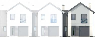 Graficzne opracowanie rzutów poglądowych widocznych na karcie projektu zostało wykonane przez Extradom.pl. Prezentowane przez Extradom.pl wizualizacje wykonane zostały przez autora projektu i należy poczytywać je jedynie za przykład i propozycję wykończenia, wizję architektoniczną autora projektu. Ostateczne wykończenie budynku może nastąpić na wiele sposobów. Szczegółowe rozwiązania zastosowane w oferowanej dokumentacji - w tym również ilość, lokalizacje i wygląd okien, drzwi, kominów - mogą w niewielkim stopniu różnić się od prezentowanej wizualizacji budynku.