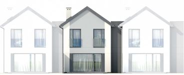 Graficzne opracowanie rzutów poglądowych widocznych na karcie projektu zostało wykonane przez Extradom.pl. Prezentowane przez Extradom.pl wizualizacje wykonane zostały przez autora projektu i należy poczytywać je jedynie za przykład i propozycję wykończenia, wizję architektoniczną autora projektu. Ostateczne wykończenie budynku może nastąpić na wiele sposobów. Szczegółowe rozwiązania zastosowane w oferowanej dokumentacji - w tym również ilość, lokalizacje i wygląd okien, drzwi, kominów - mogą w niewielkim stopniu różnić się od prezentowanej wizualizacji budynku.