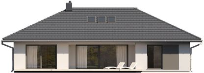 Graficzne opracowanie rzutów poglądowych widocznych na karcie projektu zostało wykonane przez Extradom.pl. Prezentowane przez Extradom.pl wizualizacje wykonane zostały przez autora projektu i należy poczytywać je jedynie za przykład i propozycję wykończenia, wizję architektoniczną autora projektu. Ostateczne wykończenie budynku może nastąpić na wiele sposobów. Szczegółowe rozwiązania zastosowane w oferowanej dokumentacji - w tym również ilość, lokalizacje i wygląd okien, drzwi, kominów - mogą w niewielkim stopniu różnić się od prezentowanej wizualizacji budynku.