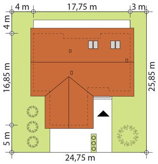 Graficzne opracowanie rzutów poglądowych widocznych na karcie projektu zostało wykonane przez Extradom.pl. Prezentowane przez Extradom.pl wizualizacje wykonane zostały przez autora projektu i należy poczytywać je jedynie za przykład i propozycję wykończenia, wizję architektoniczną autora projektu. Ostateczne wykończenie budynku może nastąpić na wiele sposobów. Szczegółowe rozwiązania zastosowane w oferowanej dokumentacji - w tym również ilość, lokalizacje i wygląd okien, drzwi, kominów - mogą w niewielkim stopniu różnić się od prezentowanej wizualizacji budynku.