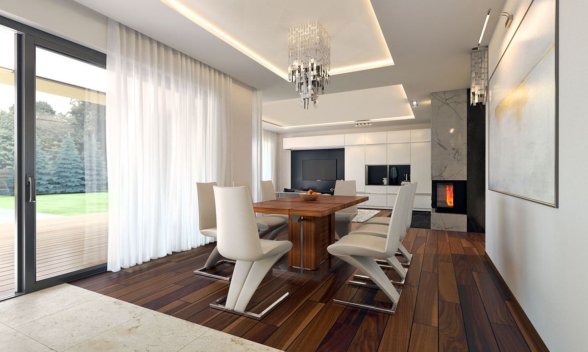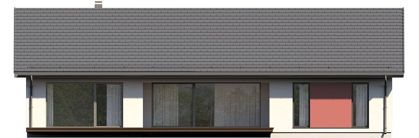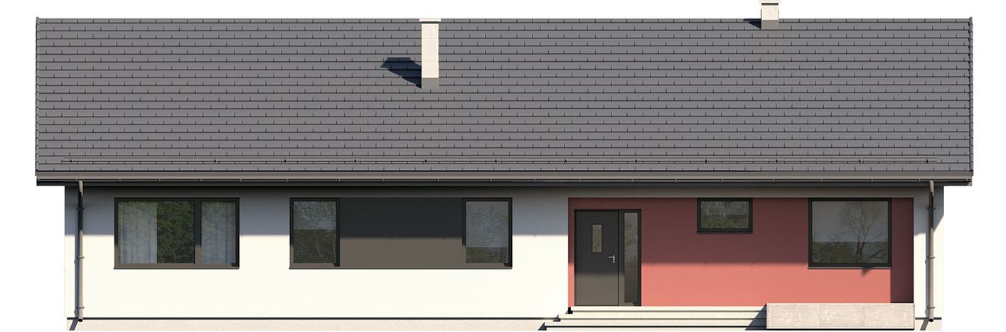 Graficzne opracowanie rzutów poglądowych widocznych na karcie projektu zostało wykonane przez Extradom.pl. Prezentowane przez Extradom.pl wizualizacje wykonane zostały przez autora projektu i należy poczytywać je jedynie za przykład i propozycję wykończenia, wizję architektoniczną autora projektu. Ostateczne wykończenie budynku może nastąpić na wiele sposobów. Szczegółowe rozwiązania zastosowane w oferowanej dokumentacji - w tym również ilość, lokalizacje i wygląd okien, drzwi, kominów - mogą w niewielkim stopniu różnić się od prezentowanej wizualizacji budynku.