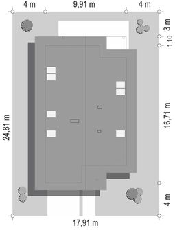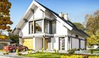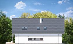 Graficzne opracowanie rzutów poglądowych widocznych na karcie projektu zostało wykonane przez Extradom.pl. Prezentowane przez Extradom.pl wizualizacje wykonane zostały przez autora projektu i należy poczytywać je jedynie za przykład i propozycję wykończenia, wizję architektoniczną autora projektu. Ostateczne wykończenie budynku może nastąpić na wiele sposobów. Szczegółowe rozwiązania zastosowane w oferowanej dokumentacji - w tym również ilość, lokalizacje i wygląd okien, drzwi, kominów - mogą w niewielkim stopniu różnić się od prezentowanej wizualizacji budynku.