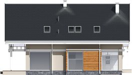 Graficzne opracowanie rzutów poglądowych widocznych na karcie projektu zostało wykonane przez Extradom.pl. Prezentowane przez Extradom.pl wizualizacje wykonane zostały przez autora projektu i należy poczytywać je jedynie za przykład i propozycję wykończenia, wizję architektoniczną autora projektu. Ostateczne wykończenie budynku może nastąpić na wiele sposobów. Szczegółowe rozwiązania zastosowane w oferowanej dokumentacji - w tym również ilość, lokalizacje i wygląd okien, drzwi, kominów - mogą w niewielkim stopniu różnić się od prezentowanej wizualizacji budynku.