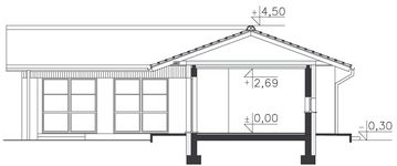 Graficzne opracowanie rzutów poglądowych widocznych na karcie projektu zostało wykonane przez Extradom.pl. Prezentowane przez Extradom.pl wizualizacje wykonane zostały przez autora projektu i należy poczytywać je jedynie za przykład i propozycję wykończenia, wizję architektoniczną autora projektu. Ostateczne wykończenie budynku może nastąpić na wiele sposobów. Szczegółowe rozwiązania zastosowane w oferowanej dokumentacji - w tym również ilość, lokalizacje i wygląd okien, drzwi, kominów - mogą w niewielkim stopniu różnić się od prezentowanej wizualizacji budynku.