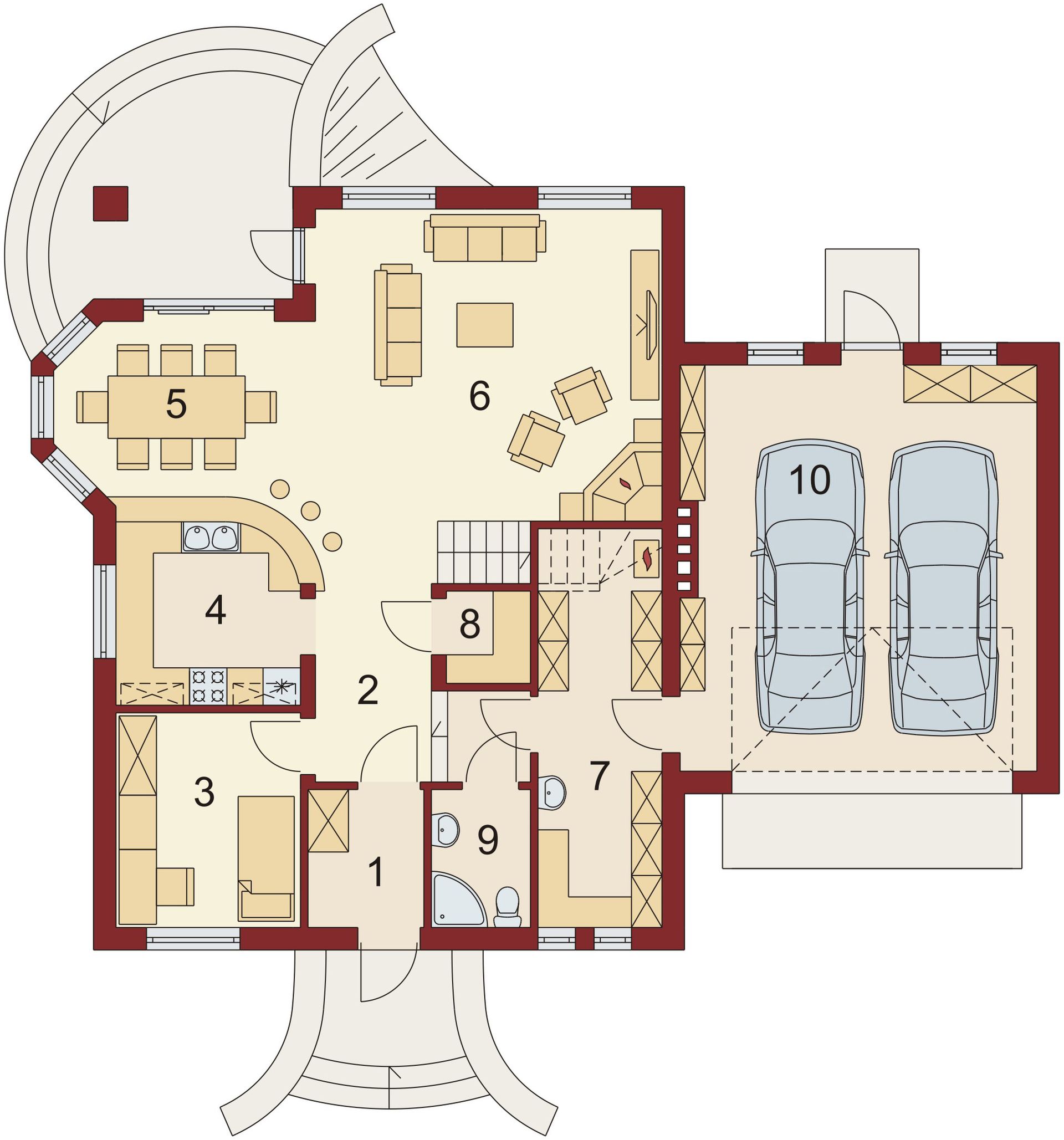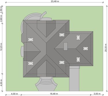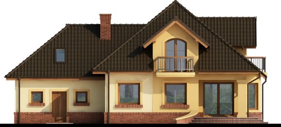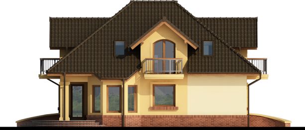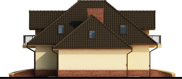 Graficzne opracowanie rzutów poglądowych widocznych na karcie projektu zostało wykonane przez Extradom.pl. Prezentowane przez Extradom.pl wizualizacje wykonane zostały przez autora projektu i należy poczytywać je jedynie za przykład i propozycję wykończenia, wizję architektoniczną autora projektu. Ostateczne wykończenie budynku może nastąpić na wiele sposobów. Szczegółowe rozwiązania zastosowane w oferowanej dokumentacji - w tym również ilość, lokalizacje i wygląd okien, drzwi, kominów - mogą w niewielkim stopniu różnić się od prezentowanej wizualizacji budynku.