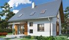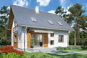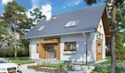 Graficzne opracowanie rzutów poglądowych widocznych na karcie projektu zostało wykonane przez Extradom.pl. Prezentowane przez Extradom.pl wizualizacje wykonane zostały przez autora projektu i należy poczytywać je jedynie za przykład i propozycję wykończenia, wizję architektoniczną autora projektu. Ostateczne wykończenie budynku może nastąpić na wiele sposobów. Szczegółowe rozwiązania zastosowane w oferowanej dokumentacji - w tym również ilość, lokalizacje i wygląd okien, drzwi, kominów - mogą w niewielkim stopniu różnić się od prezentowanej wizualizacji budynku.