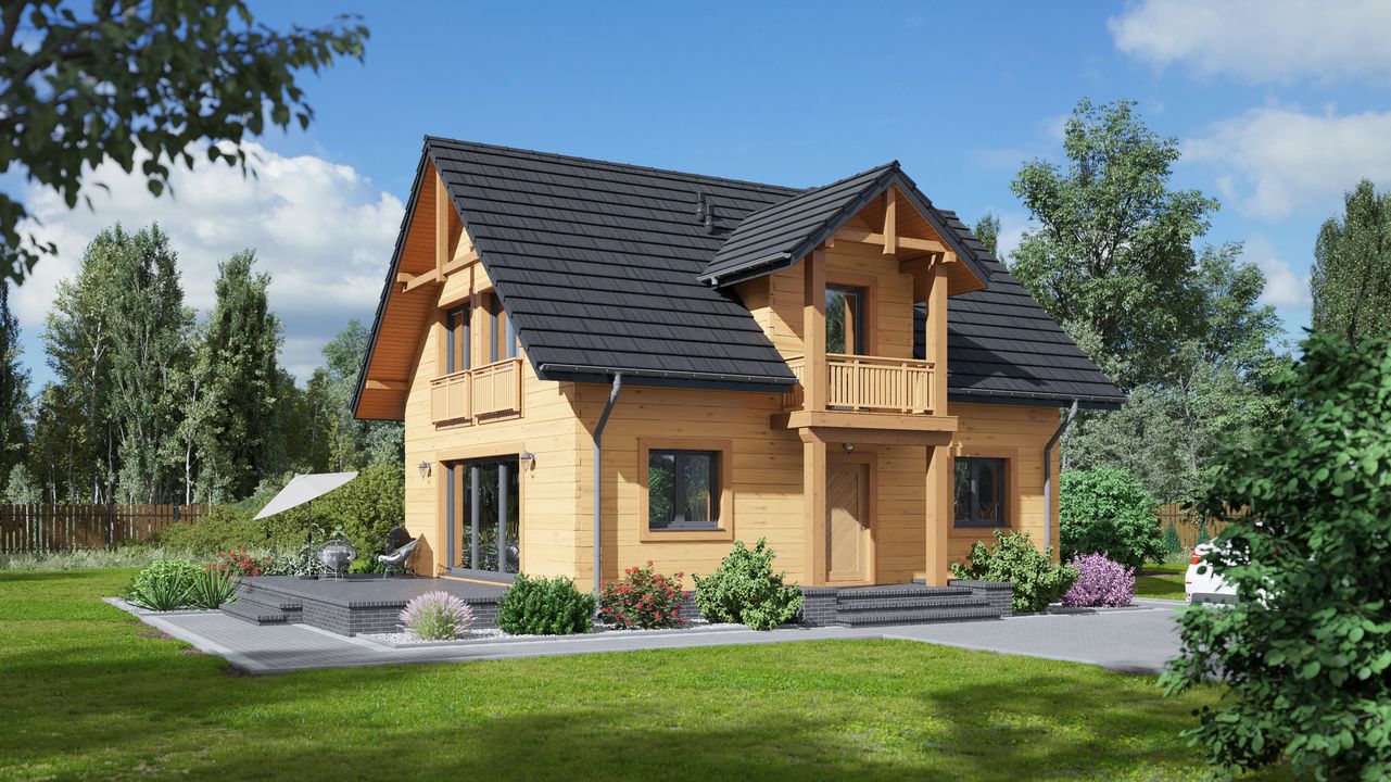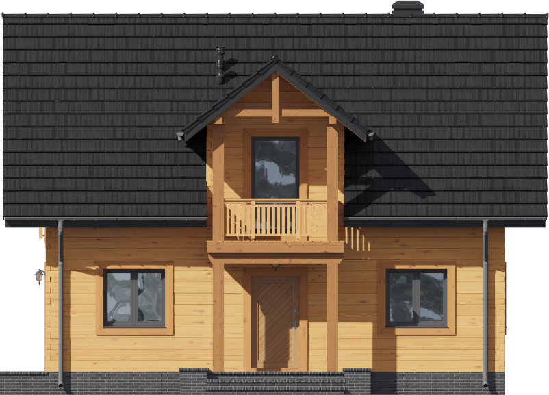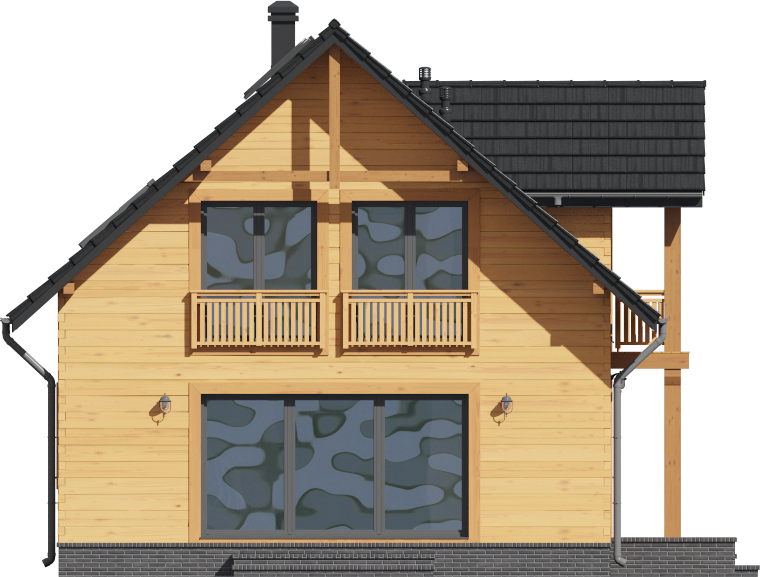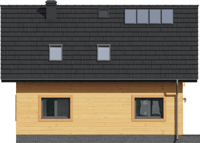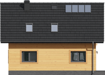 Graficzne opracowanie rzutów poglądowych widocznych na karcie projektu zostało wykonane przez Extradom.pl. Prezentowane przez Extradom.pl wizualizacje wykonane zostały przez autora projektu i należy poczytywać je jedynie za przykład i propozycję wykończenia, wizję architektoniczną autora projektu. Ostateczne wykończenie budynku może nastąpić na wiele sposobów. Szczegółowe rozwiązania zastosowane w oferowanej dokumentacji - w tym również ilość, lokalizacje i wygląd okien, drzwi, kominów - mogą w niewielkim stopniu różnić się od prezentowanej wizualizacji budynku.