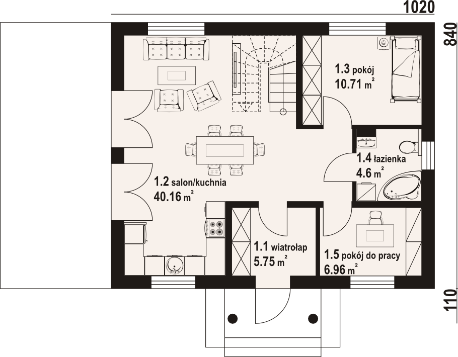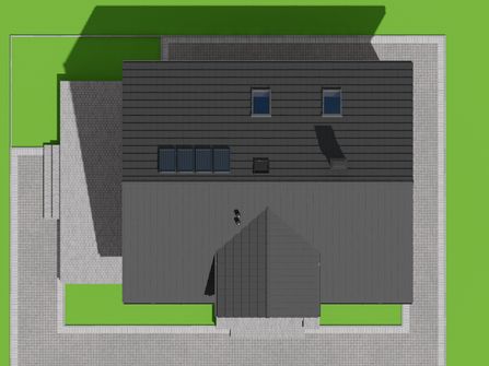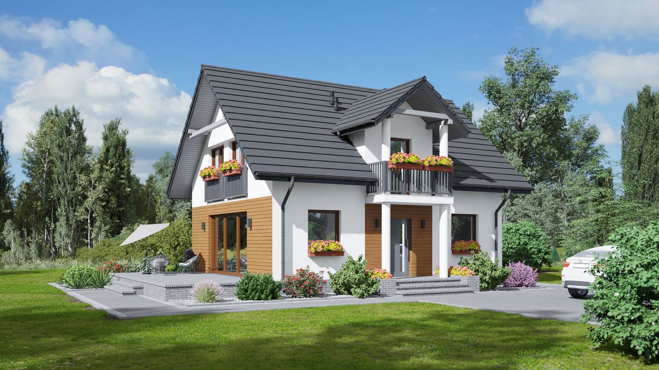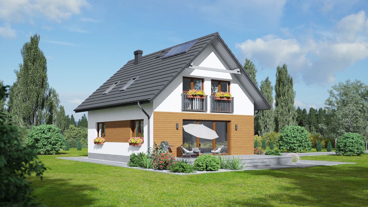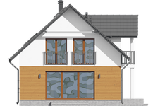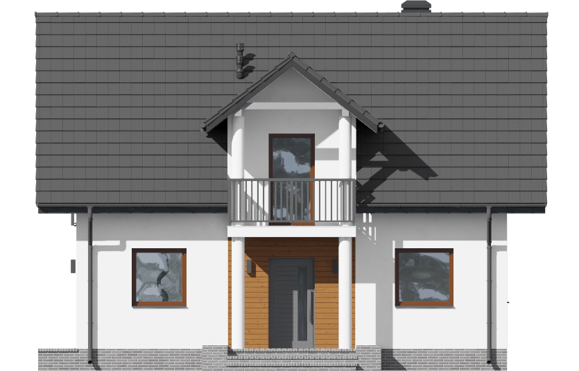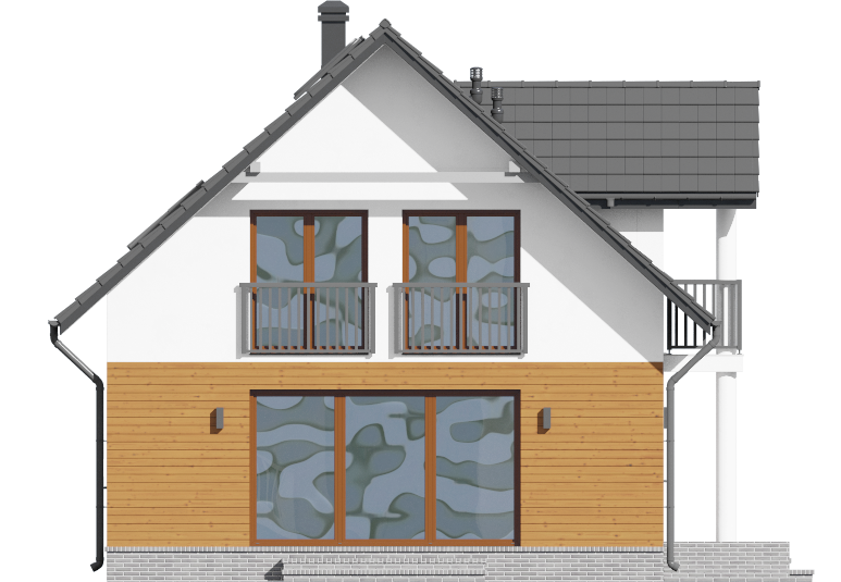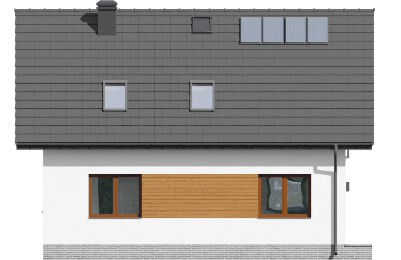 Graficzne opracowanie rzutów poglądowych widocznych na karcie projektu zostało wykonane przez Extradom.pl. Prezentowane przez Extradom.pl wizualizacje wykonane zostały przez autora projektu i należy poczytywać je jedynie za przykład i propozycję wykończenia, wizję architektoniczną autora projektu. Ostateczne wykończenie budynku może nastąpić na wiele sposobów. Szczegółowe rozwiązania zastosowane w oferowanej dokumentacji - w tym również ilość, lokalizacje i wygląd okien, drzwi, kominów - mogą w niewielkim stopniu różnić się od prezentowanej wizualizacji budynku.