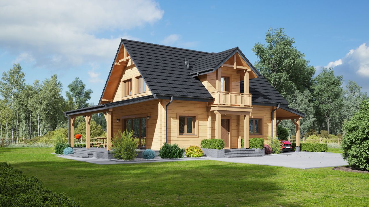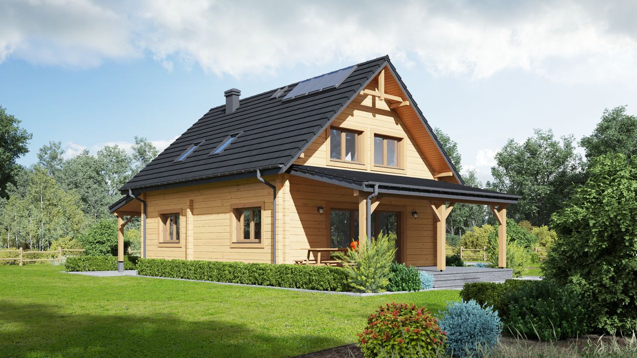 Strop: drewniany. Pokrycie dachu: dachówka gontopodobna Gerard Corona. Ściany zewnętrzne: płazy drewniane + wełna mineralna + deska. Ściany wewnętrzne: płazy drewniane. Typ ogrzewania: kocioł gazowy. Instalacje dodatkowe: instalacja solarna.