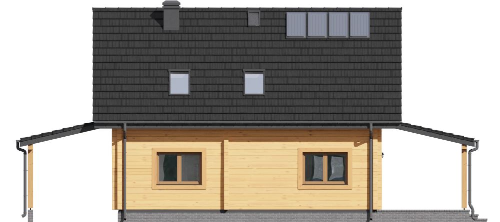 Graficzne opracowanie rzutów poglądowych widocznych na karcie projektu zostało wykonane przez Extradom.pl. Prezentowane przez Extradom.pl wizualizacje wykonane zostały przez autora projektu i należy poczytywać je jedynie za przykład i propozycję wykończenia, wizję architektoniczną autora projektu. Ostateczne wykończenie budynku może nastąpić na wiele sposobów. Szczegółowe rozwiązania zastosowane w oferowanej dokumentacji - w tym również ilość, lokalizacje i wygląd okien, drzwi, kominów - mogą w niewielkim stopniu różnić się od prezentowanej wizualizacji budynku.