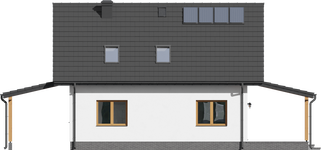Graficzne opracowanie rzutów poglądowych widocznych na karcie projektu zostało wykonane przez Extradom.pl. Prezentowane przez Extradom.pl wizualizacje wykonane zostały przez autora projektu i należy poczytywać je jedynie za przykład i propozycję wykończenia, wizję architektoniczną autora projektu. Ostateczne wykończenie budynku może nastąpić na wiele sposobów. Szczegółowe rozwiązania zastosowane w oferowanej dokumentacji - w tym również ilość, lokalizacje i wygląd okien, drzwi, kominów - mogą w niewielkim stopniu różnić się od prezentowanej wizualizacji budynku.