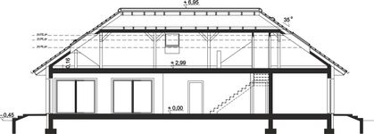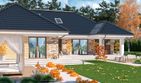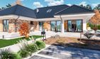 Graficzne opracowanie rzutów poglądowych widocznych na karcie projektu zostało wykonane przez Extradom.pl. Prezentowane przez Extradom.pl wizualizacje wykonane zostały przez autora projektu i należy poczytywać je jedynie za przykład i propozycję wykończenia, wizję architektoniczną autora projektu. Ostateczne wykończenie budynku może nastąpić na wiele sposobów. Szczegółowe rozwiązania zastosowane w oferowanej dokumentacji - w tym również ilość, lokalizacje i wygląd okien, drzwi, kominów - mogą w niewielkim stopniu różnić się od prezentowanej wizualizacji budynku.