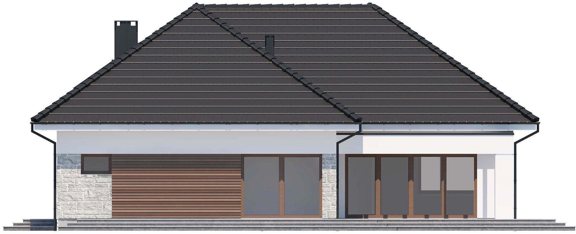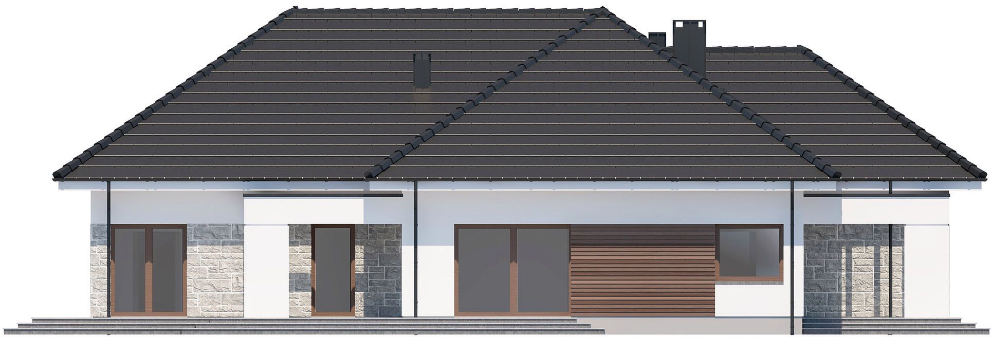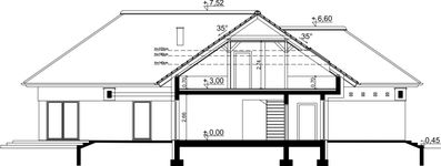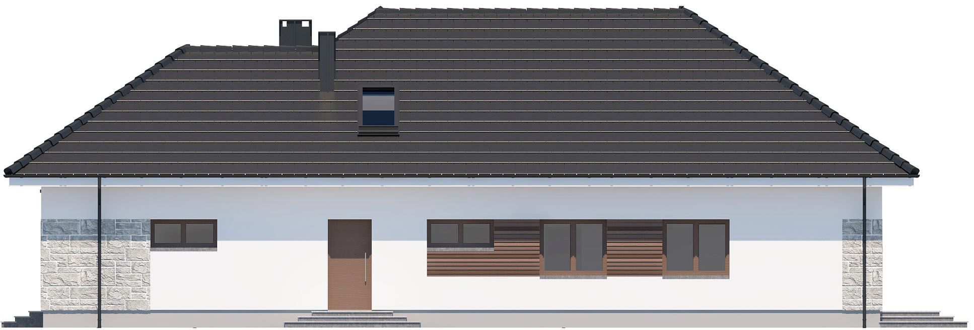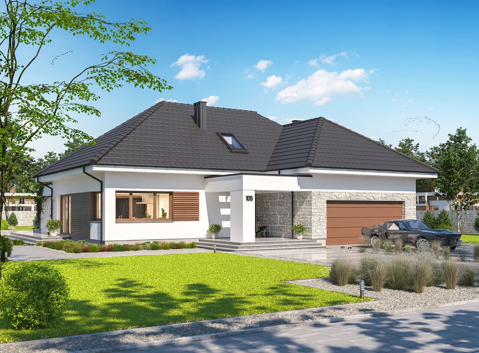 Graficzne opracowanie rzutów poglądowych widocznych na karcie projektu zostało wykonane przez Extradom.pl. Prezentowane przez Extradom.pl wizualizacje wykonane zostały przez autora projektu i należy poczytywać je jedynie za przykład i propozycję wykończenia, wizję architektoniczną autora projektu. Ostateczne wykończenie budynku może nastąpić na wiele sposobów. Szczegółowe rozwiązania zastosowane w oferowanej dokumentacji - w tym również ilość, lokalizacje i wygląd okien, drzwi, kominów - mogą w niewielkim stopniu różnić się od prezentowanej wizualizacji budynku.