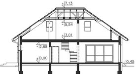 Graficzne opracowanie rzutów poglądowych widocznych na karcie projektu zostało wykonane przez Extradom.pl. Prezentowane przez Extradom.pl wizualizacje wykonane zostały przez autora projektu i należy poczytywać je jedynie za przykład i propozycję wykończenia, wizję architektoniczną autora projektu. Ostateczne wykończenie budynku może nastąpić na wiele sposobów. Szczegółowe rozwiązania zastosowane w oferowanej dokumentacji - w tym również ilość, lokalizacje i wygląd okien, drzwi, kominów - mogą w niewielkim stopniu różnić się od prezentowanej wizualizacji budynku.