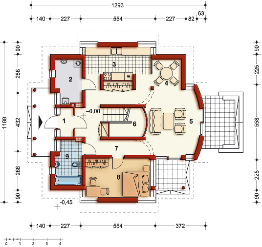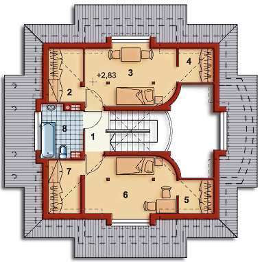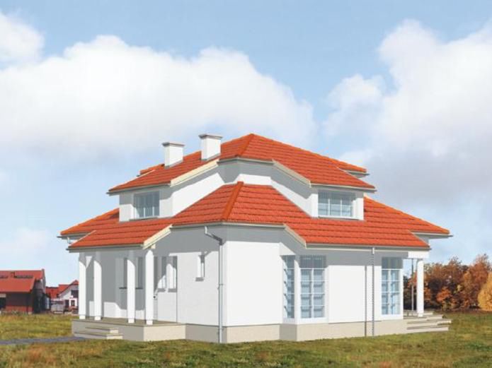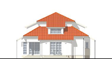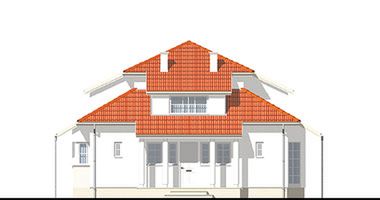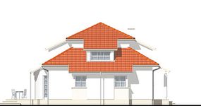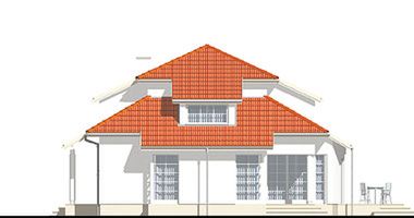 Graficzne opracowanie rzutów poglądowych widocznych na karcie projektu zostało wykonane przez Extradom.pl. Prezentowane przez Extradom.pl wizualizacje wykonane zostały przez autora projektu i należy poczytywać je jedynie za przykład i propozycję wykończenia, wizję architektoniczną autora projektu. Ostateczne wykończenie budynku może nastąpić na wiele sposobów. Szczegółowe rozwiązania zastosowane w oferowanej dokumentacji - w tym również ilość, lokalizacje i wygląd okien, drzwi, kominów - mogą w niewielkim stopniu różnić się od prezentowanej wizualizacji budynku.