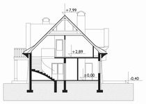 Graficzne opracowanie rzutów poglądowych widocznych na karcie projektu zostało wykonane przez Extradom.pl. Prezentowane przez Extradom.pl wizualizacje wykonane zostały przez autora projektu i należy poczytywać je jedynie za przykład i propozycję wykończenia, wizję architektoniczną autora projektu. Ostateczne wykończenie budynku może nastąpić na wiele sposobów. Szczegółowe rozwiązania zastosowane w oferowanej dokumentacji - w tym również ilość, lokalizacje i wygląd okien, drzwi, kominów - mogą w niewielkim stopniu różnić się od prezentowanej wizualizacji budynku.