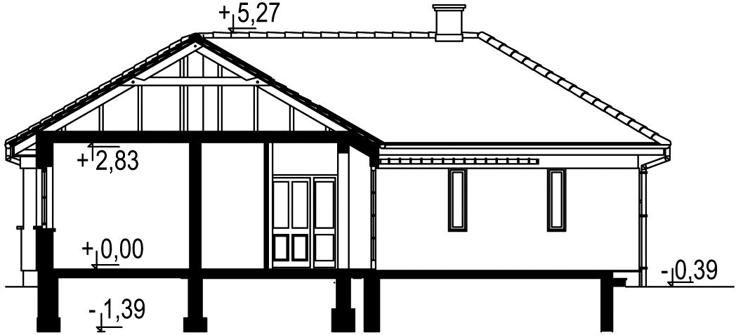 Ściany zewnętrzne dwuwarstwowe: cegła SILKA + wełna mineralna + tynk. Ściany wewnętrzne: cegła SILKA i/lub płyty na ruszcie stalowym, wygłuszone wełną mineralną. Strop: drewniany. Więźba dachowa: tradycyjna drewniana. Poszycie dachu: dachówka cementowa. Stolarka: drewniana lub PCV. Instalacja centralnego ogrzewania: kocioł dwufunkcyjny + grzejniki.
