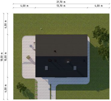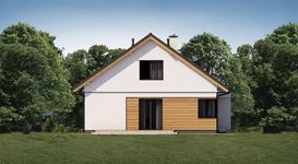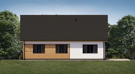 Graficzne opracowanie rzutów poglądowych widocznych na karcie projektu zostało wykonane przez Extradom.pl. Prezentowane przez Extradom.pl wizualizacje wykonane zostały przez autora projektu i należy poczytywać je jedynie za przykład i propozycję wykończenia, wizję architektoniczną autora projektu. Ostateczne wykończenie budynku może nastąpić na wiele sposobów. Szczegółowe rozwiązania zastosowane w oferowanej dokumentacji - w tym również ilość, lokalizacje i wygląd okien, drzwi, kominów - mogą w niewielkim stopniu różnić się od prezentowanej wizualizacji budynku.