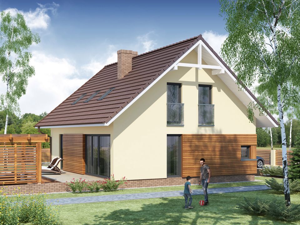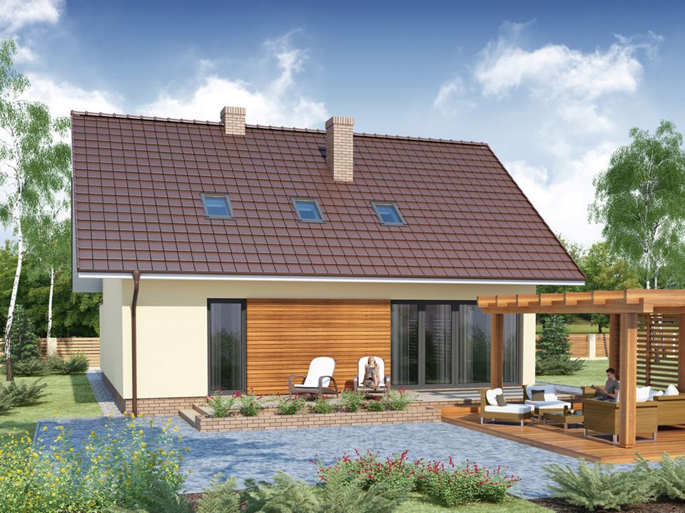 Idealnego projektu domu szukaliśmy naprawdę długo, bo aż 1,5 roku. Ostatecznie zdecydowaliśmy jednak, że najlepszym wyborem dla naszej rodziny będzie projekt domu Pandora PS WRW1192, który w całości bardzo przypadł nam do gustu i uwzględniał rozwiązania, na których od początku nam zależało. Istotny wpływ na naszą decyzję miał z pewnością przewidziany na parterze dodatkowy pokój, ponieważ od początku chcieliśmy mieć w nowym domu sypialnię dla gości. Zaproponowany przez architekta układ pomieszczeń od razu wydał się nam bardzo funkcjonalny, a prosta konstrukcja budynku dawała gwarancję, iż jego realizacja będzie stosunkowo łatwa.Nasze przypuszczenia okazały się jak najbardziej słuszne. Wybudowanie nowego domu nie stanowiło dla wykonawców trudności, a w trakcie trwania całej inwestycji nie natrafiliśmy na żadne problemy. Co prawda, załatwienie wszystkich formalności uprawniających nas do rozpoczęcia budowy zajęło dosyć sporo czasu, jednak od momentu wykonania pierwszych prac wszystko przebiegło naprawdę szybko. Zaczęliśmy w kwietniu i już po 1,5 miesiąca budynek stanął w stanie surowym otwartym. Wykończenia również nie trwały długo i już w październiku mogliśmy wprowadzić się do nowego domu. Do wymurowania ścian użyliśmy gazobetonowych bloczków Solbet łączonych metodą „na klej”. Strop tradycyjnie wylaliśmy betonem, zaś dach pokryliśmy dachówką. Uważam, że przy użyciu powyższych materiałów śmiało można sugerować się oszacowanym przez architekta kosztorysem. Zmieszczenie się w podanej kwocie jest w pełni realne, a w naszym przypadku cena inwestycji była nawet nieco mniejsza.Dom ogrzewamy za pomocą pieca na paliwo stałe, dlatego też zależało nam, aby kotłownia nie znajdowała się na tym samym poziomie co pozostałe pomieszczenia. Postanowiliśmy więc wykonać częściowe podpiwniczenie budynku, mogąc tym samym zainstalować piec na najniższej, nowopowstałej kondygnacji. Oryginalną powierzchnię kotłowni przeznaczyliśmy na zrobienie praktycznego gabinetu. Zarówno mniejsze okno tarasowe w salonie, jak i takie samo przeszklenie znajdujące się w pokoju gościnny, zamieniliśmy na standardowe okna o wymiarach 150x150. Świetnym pomysłem było także podniesienie ścianki kolankowej o wysokość jednego bloczka - 24 cm, dzięki czemu sypialnie na poddaszu stały się przestronniejsze i uzyskaliśmy w nich więcej powierzchni do w pełni użytkowego wykorzystania.Innych poprawek nie nanosiliśmy i na tą chwilę nie chciałabym już nic więcej zmieniać w naszym nowym domu. Jego wnętrze zostało doskonale przemyślane, co sprawia że mieszka się nam z pełnym komfortem. W kwestii wizualnej budynek świetnie się prezentuje i jest przy tym dosyć niepozorny. Z zewnątrz wygląda na dosyć nieduży, jednak po wejściu do środka okazuje się, że wnętrze jest bardzo przestronne i wszyscy odwiedzający nas goście są niezwykle pozytywnie zaskoczeni tym faktem. Jesteśmy 4-osobową rodziną, aczkolwiek myślę że taki metraż doskonale sprawdziłby się nawet w przypadku szóstki domowników. Decyzja o wyborze projektu domu parterowego z poddaszem użytkowym Pandora PS WRW1192 okazała się jak najbardziej trafiona i jesteśmy naprawdę zadowoleni z naszego wyboru. Pozdrawiam.