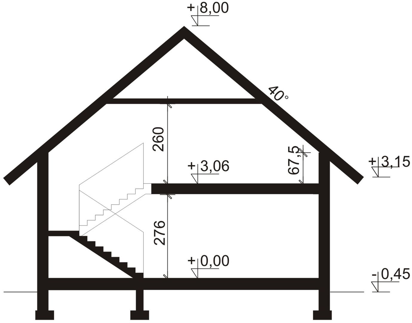 Fundamenty: bezpośrednie, na ławach i stopach fundamentowych. Ściany zewnętrzne: bloczki z bet. komórkowego (odm. 600) - 24 cm + styropian TERMO ORGANIKA typ Fasada 16 cm. Ściany wewnętrzne: bloczki z bet. komórkowego (odm. 600) - 24 cm (działowe - 12 cm) + działowe z płyty G-K na ruszcie (poddasze). Strop: gęstożebrowy Teriva I oraz żelbetowy monolityczny gr. 14 i 20 cm.. Elewacje: tynk - System Platinum firmy TERMO ORGANIKA, okładzina drewniana - deska elewacyjna, płytki klinkierowe. Pokrycie dachu: dachówka ceramiczna. Konstrukcja dachu: drewniana o układzie konstrukcyjnym krokwiowo-jętkowym. Schody wewnętrzne: drewniane wg indywidualnego projektu. Ogrzewanie: kocioł gazowy kondensacyjny lub kocioł na paliwo stałe, dodatkowe źródło ciepła - kominek z płasczem wodnym.