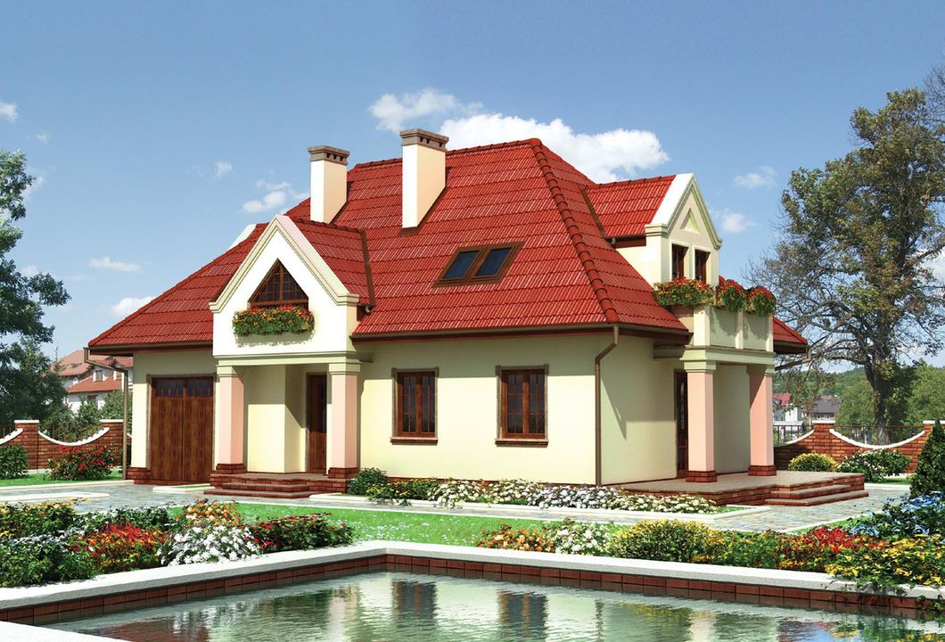 Graficzne opracowanie rzutów poglądowych widocznych na karcie projektu zostało wykonane przez Extradom.pl. Prezentowane przez Extradom.pl wizualizacje wykonane zostały przez autora projektu i należy poczytywać je jedynie za przykład i propozycję wykończenia, wizję architektoniczną autora projektu. Ostateczne wykończenie budynku może nastąpić na wiele sposobów. Szczegółowe rozwiązania zastosowane w oferowanej dokumentacji - w tym również ilość, lokalizacje i wygląd okien, drzwi, kominów - mogą w niewielkim stopniu różnić się od prezentowanej wizualizacji budynku.