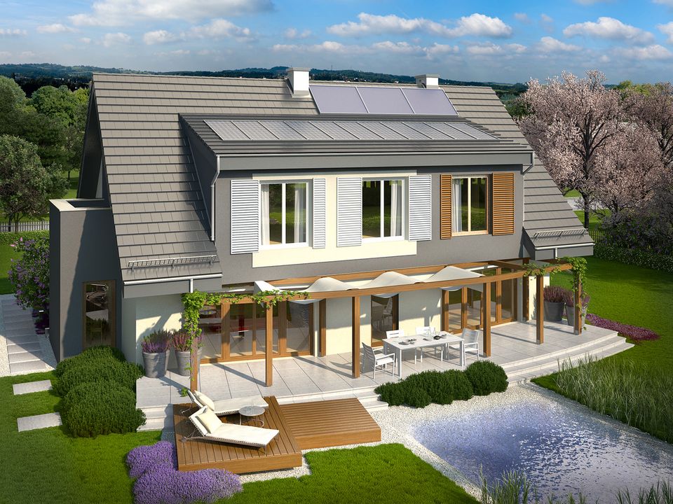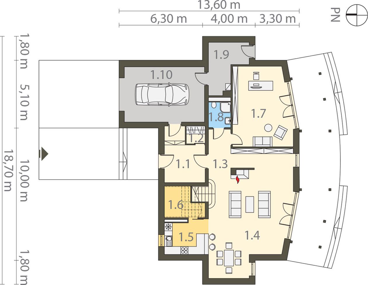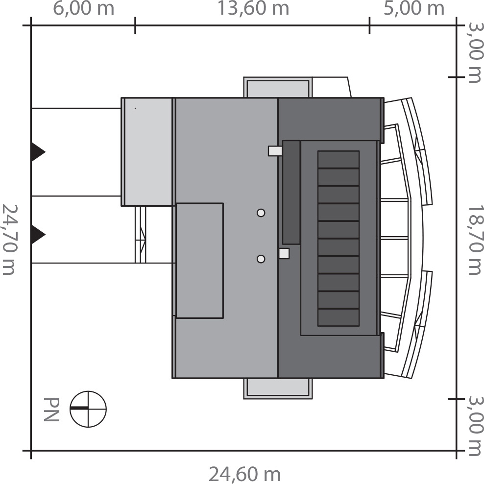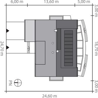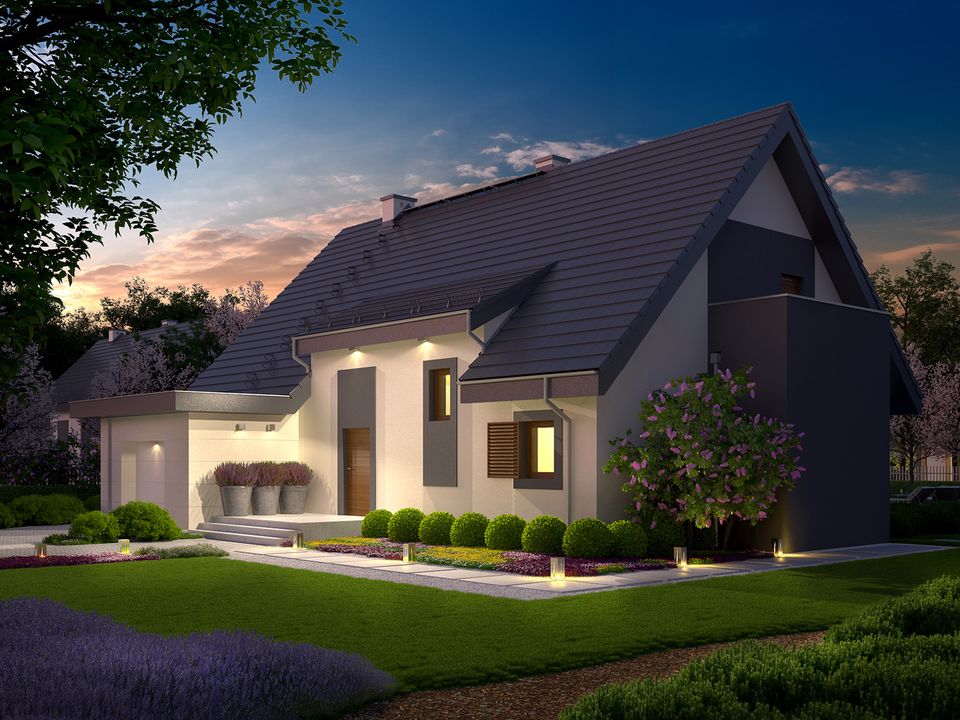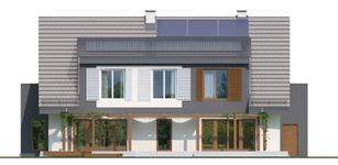 Graficzne opracowanie rzutów poglądowych widocznych na karcie projektu zostało wykonane przez Extradom.pl. Prezentowane przez Extradom.pl wizualizacje wykonane zostały przez autora projektu i należy poczytywać je jedynie za przykład i propozycję wykończenia, wizję architektoniczną autora projektu. Ostateczne wykończenie budynku może nastąpić na wiele sposobów. Szczegółowe rozwiązania zastosowane w oferowanej dokumentacji - w tym również ilość, lokalizacje i wygląd okien, drzwi, kominów - mogą w niewielkim stopniu różnić się od prezentowanej wizualizacji budynku.