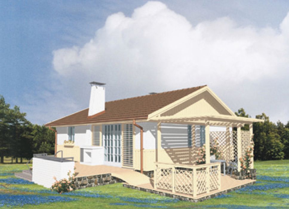 Graficzne opracowanie rzutów poglądowych widocznych na karcie projektu zostało wykonane przez Extradom.pl. Prezentowane przez Extradom.pl wizualizacje wykonane zostały przez autora projektu i należy poczytywać je jedynie za przykład i propozycję wykończenia, wizję architektoniczną autora projektu. Ostateczne wykończenie budynku może nastąpić na wiele sposobów. Szczegółowe rozwiązania zastosowane w oferowanej dokumentacji - w tym również ilość, lokalizacje i wygląd okien, drzwi, kominów - mogą w niewielkim stopniu różnić się od prezentowanej wizualizacji budynku.