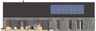 Graficzne opracowanie rzutów poglądowych widocznych na karcie projektu zostało wykonane przez Extradom.pl. Prezentowane przez Extradom.pl wizualizacje wykonane zostały przez autora projektu i należy poczytywać je jedynie za przykład i propozycję wykończenia, wizję architektoniczną autora projektu. Ostateczne wykończenie budynku może nastąpić na wiele sposobów. Szczegółowe rozwiązania zastosowane w oferowanej dokumentacji - w tym również ilość, lokalizacje i wygląd okien, drzwi, kominów - mogą w niewielkim stopniu różnić się od prezentowanej wizualizacji budynku.