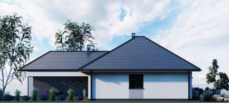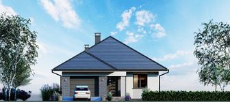 Graficzne opracowanie rzutów poglądowych widocznych na karcie projektu zostało wykonane przez Extradom.pl. Prezentowane przez Extradom.pl wizualizacje wykonane zostały przez autora projektu i należy poczytywać je jedynie za przykład i propozycję wykończenia, wizję architektoniczną autora projektu. Ostateczne wykończenie budynku może nastąpić na wiele sposobów. Szczegółowe rozwiązania zastosowane w oferowanej dokumentacji - w tym również ilość, lokalizacje i wygląd okien, drzwi, kominów - mogą w niewielkim stopniu różnić się od prezentowanej wizualizacji budynku.