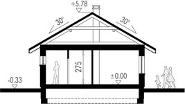 Graficzne opracowanie rzutów poglądowych widocznych na karcie projektu zostało wykonane przez Extradom.pl. Prezentowane przez Extradom.pl wizualizacje wykonane zostały przez autora projektu i należy poczytywać je jedynie za przykład i propozycję wykończenia, wizję architektoniczną autora projektu. Ostateczne wykończenie budynku może nastąpić na wiele sposobów. Szczegółowe rozwiązania zastosowane w oferowanej dokumentacji - w tym również ilość, lokalizacje i wygląd okien, drzwi, kominów - mogą w niewielkim stopniu różnić się od prezentowanej wizualizacji budynku.