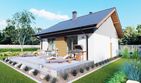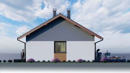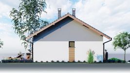 Graficzne opracowanie rzutów poglądowych widocznych na karcie projektu zostało wykonane przez Extradom.pl. Prezentowane przez Extradom.pl wizualizacje wykonane zostały przez autora projektu i należy poczytywać je jedynie za przykład i propozycję wykończenia, wizję architektoniczną autora projektu. Ostateczne wykończenie budynku może nastąpić na wiele sposobów. Szczegółowe rozwiązania zastosowane w oferowanej dokumentacji - w tym również ilość, lokalizacje i wygląd okien, drzwi, kominów - mogą w niewielkim stopniu różnić się od prezentowanej wizualizacji budynku.
