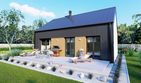 Graficzne opracowanie rzutów poglądowych widocznych na karcie projektu zostało wykonane przez Extradom.pl. Prezentowane przez Extradom.pl wizualizacje wykonane zostały przez autora projektu i należy poczytywać je jedynie za przykład i propozycję wykończenia, wizję architektoniczną autora projektu. Ostateczne wykończenie budynku może nastąpić na wiele sposobów. Szczegółowe rozwiązania zastosowane w oferowanej dokumentacji - w tym również ilość, lokalizacje i wygląd okien, drzwi, kominów - mogą w niewielkim stopniu różnić się od prezentowanej wizualizacji budynku.