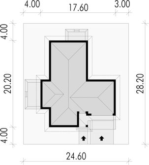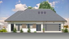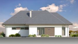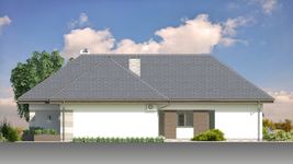 Graficzne opracowanie rzutów poglądowych widocznych na karcie projektu zostało wykonane przez Extradom.pl. Prezentowane przez Extradom.pl wizualizacje wykonane zostały przez autora projektu i należy poczytywać je jedynie za przykład i propozycję wykończenia, wizję architektoniczną autora projektu. Ostateczne wykończenie budynku może nastąpić na wiele sposobów. Szczegółowe rozwiązania zastosowane w oferowanej dokumentacji - w tym również ilość, lokalizacje i wygląd okien, drzwi, kominów - mogą w niewielkim stopniu różnić się od prezentowanej wizualizacji budynku.