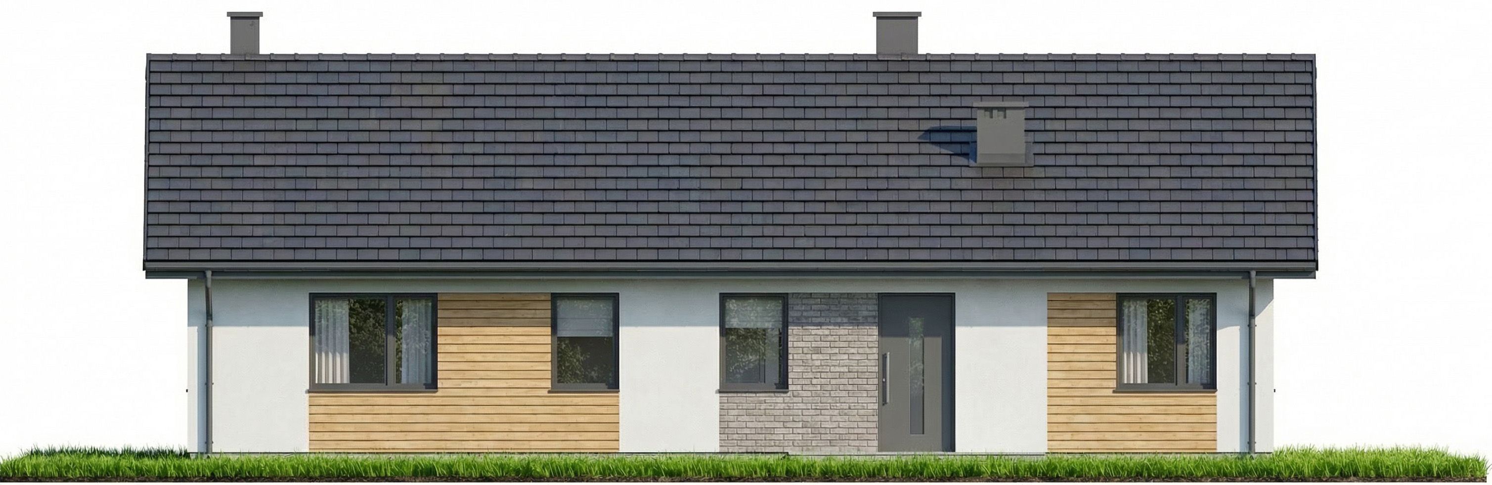 Graficzne opracowanie rzutów poglądowych widocznych na karcie projektu zostało wykonane przez Extradom.pl. Prezentowane przez Extradom.pl wizualizacje wykonane zostały przez autora projektu i należy poczytywać je jedynie za przykład i propozycję wykończenia, wizję architektoniczną autora projektu. Ostateczne wykończenie budynku może nastąpić na wiele sposobów. Szczegółowe rozwiązania zastosowane w oferowanej dokumentacji - w tym również ilość, lokalizacje i wygląd okien, drzwi, kominów - mogą w niewielkim stopniu różnić się od prezentowanej wizualizacji budynku.