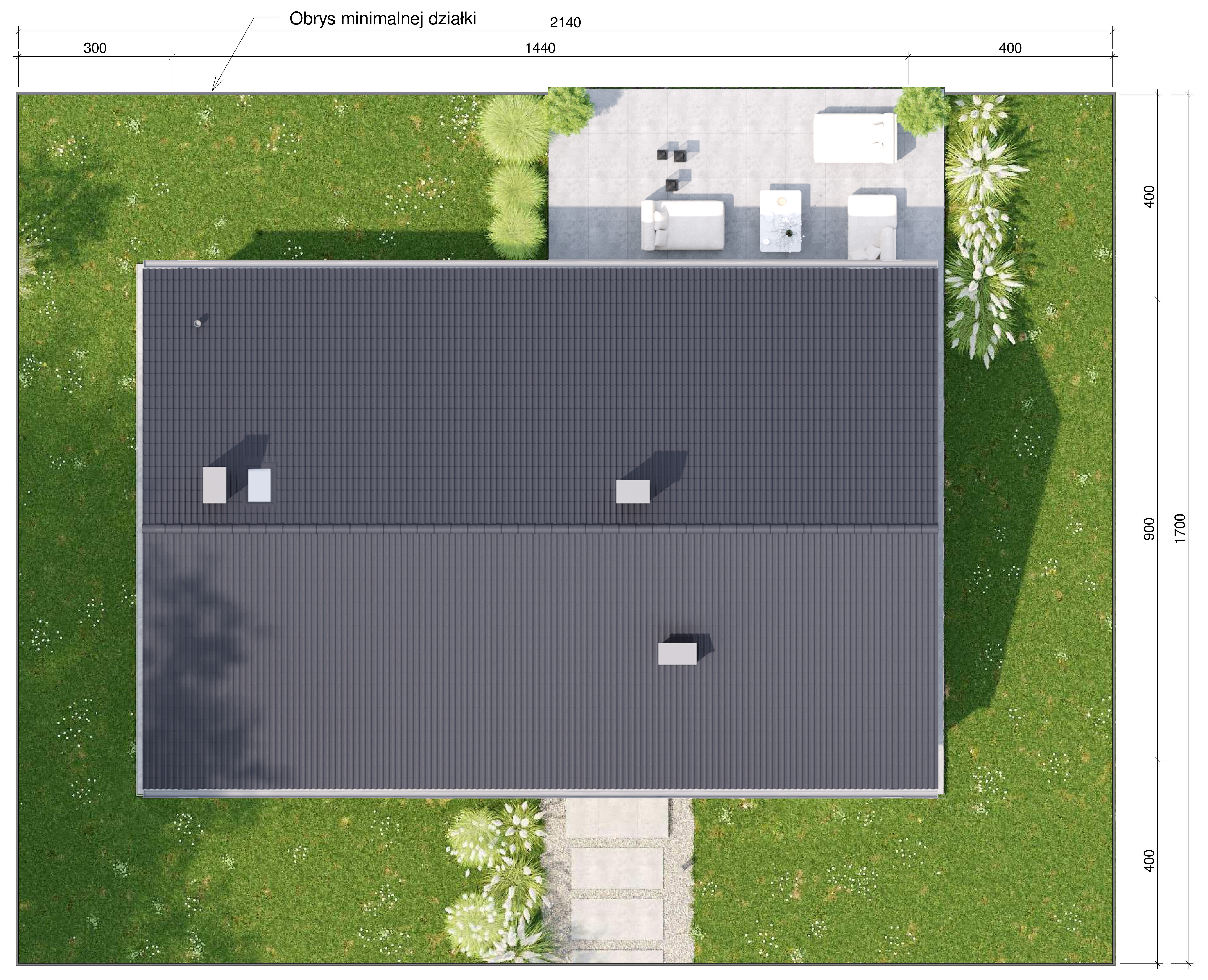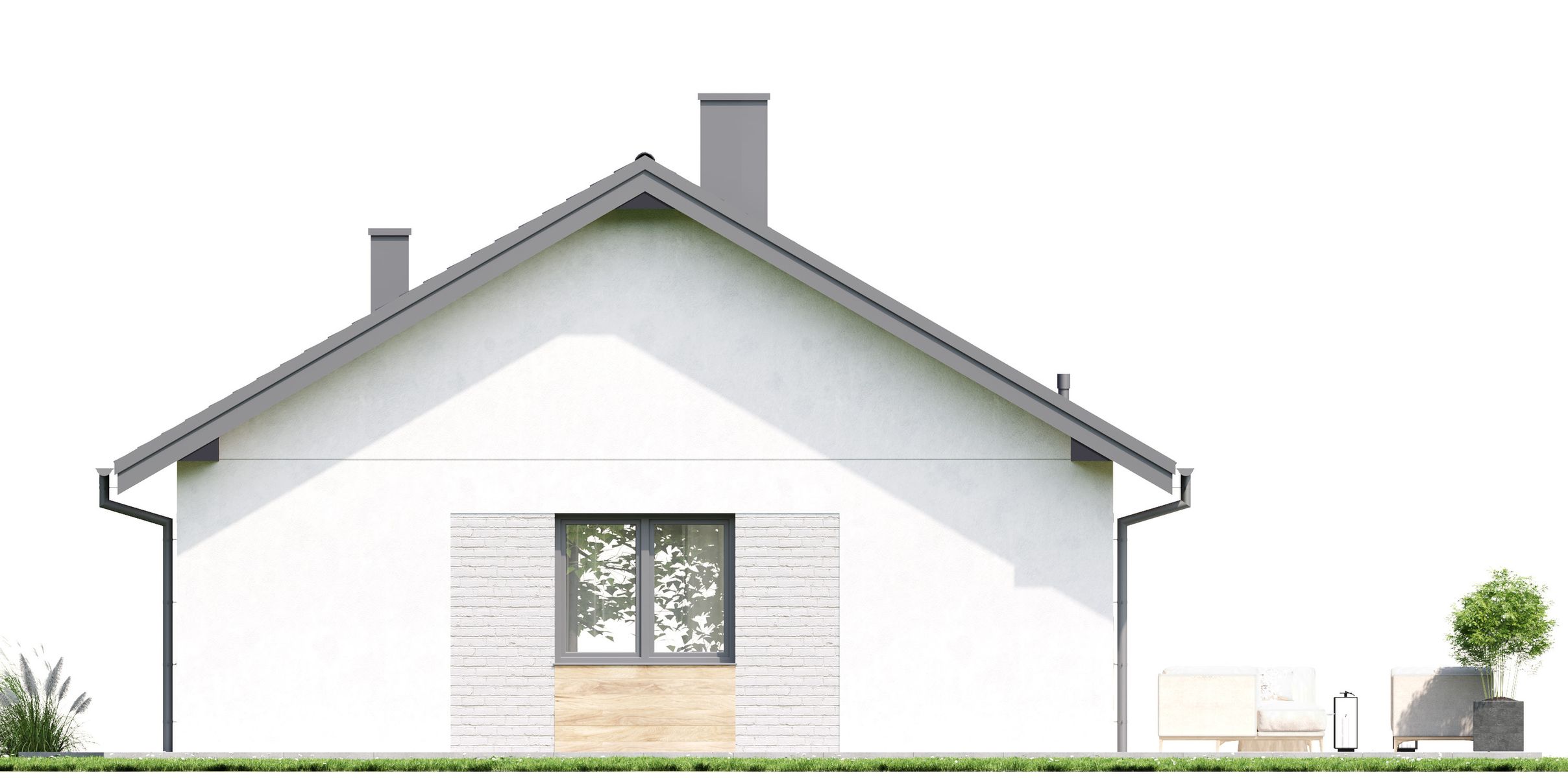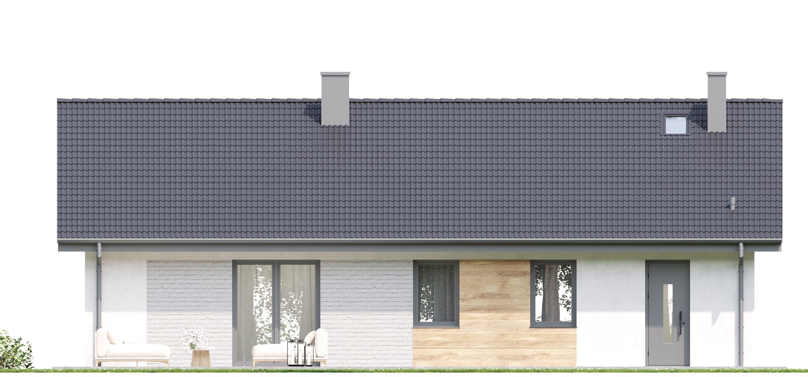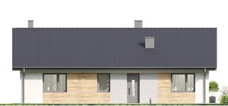 Graficzne opracowanie rzutów poglądowych widocznych na karcie projektu zostało wykonane przez Extradom.pl. Prezentowane przez Extradom.pl wizualizacje wykonane zostały przez autora projektu i należy poczytywać je jedynie za przykład i propozycję wykończenia, wizję architektoniczną autora projektu. Ostateczne wykończenie budynku może nastąpić na wiele sposobów. Szczegółowe rozwiązania zastosowane w oferowanej dokumentacji - w tym również ilość, lokalizacje i wygląd okien, drzwi, kominów - mogą w niewielkim stopniu różnić się od prezentowanej wizualizacji budynku.